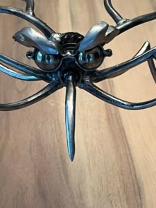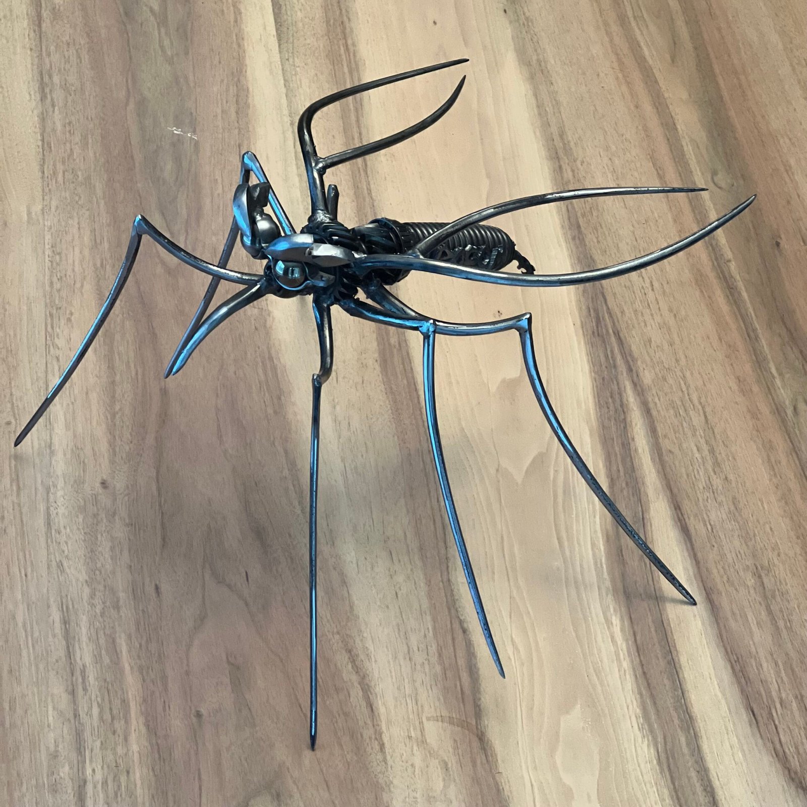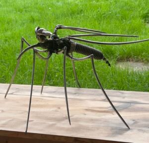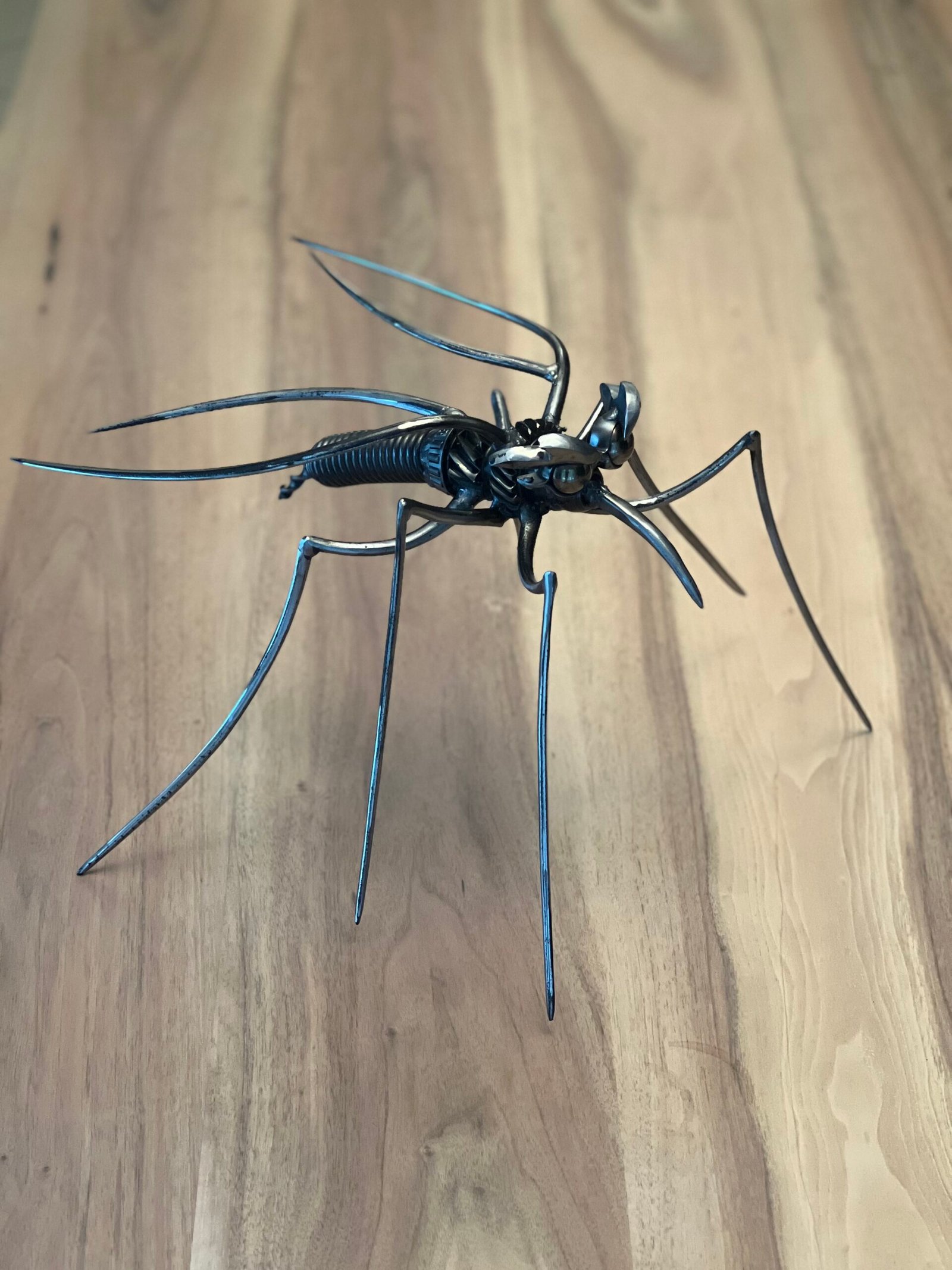 Le moustique métallique se déploie avec une grâce géométrique, ses lignes fines dessinant un équilibre parfait entre force et légèreté.